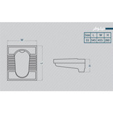 ابعاد این توالت زمینی ۲۶*۴۵٫۵*۵۴٫۵ سانتی متر و سایز آن ۵۵ است. توالت ها عمدتا در دو نوع آبریز باز و آبریز بسته هستند. در توالت های ریم بسته به وسیله کانال بسته اطراف کاسه و سوراخ هایی که در دو طرف قرار دارند ، آب در هنگام استفاده از فلاش تانک با شدت بیشتری وارد کاسه می گردد و عملیات شست و شو و آب گیری به نحو کامل تری صورت می پذیرد. در توالت های ریم باز ، آب از طریق دور آبریز ، وارد کاسه می شود. این توالت ایرانی در سه درجه برای مشتریان عرضه می گردد.